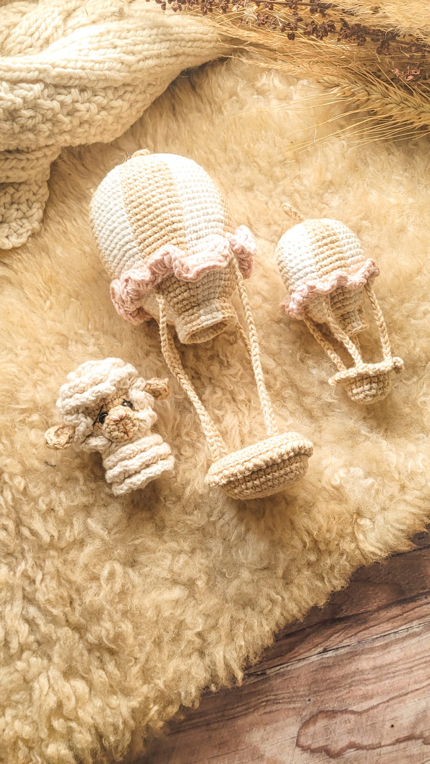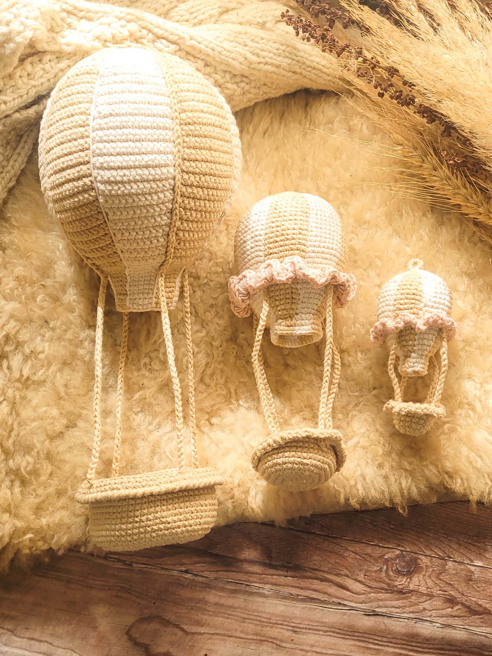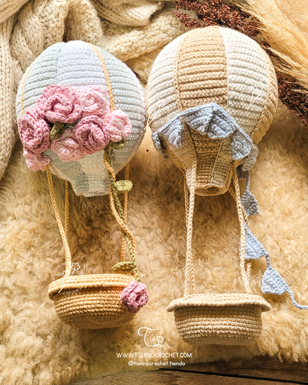 PDF – Combo Amigurumi, Patrón Globo Aerostático Grande + Mediano + Mini Globo de regalo.